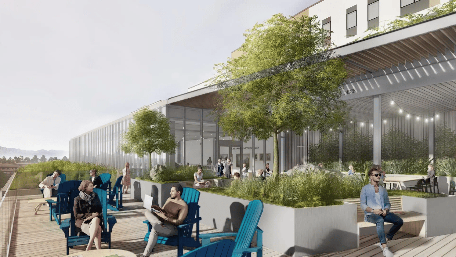 This proposed hotel is to be constructed on Front Street at Laurel, at the site of the former Santa Cruz Community Credit Union building, which will be demolished. The city council approved the plan in 2024. It is to be a 232-room hotel, fronting on the San Lorenzo Riverwalk, with three floors of underground parking.